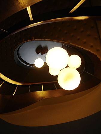 人拿咖啡吧位在恬靜的樹林街住宅區,外表看起來就像是鄰居家,進去要先脫鞋,就像是到朋友家拜訪一樣。拜先抵達的朋友所賜,我們坐到了一樓很具人氣的座位,就位在通往二樓的環狀樓梯下方,抬頭可以見到旋轉成美麗環狀的樓梯及吊燈。桌上的木頭刻字顯示我們的座位是「中環」。